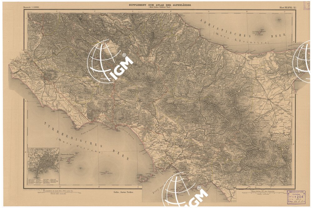 Fogli 12 – Tipo di stampa: in nero colorata a mano, rappresentazione orografica a tratteggio.