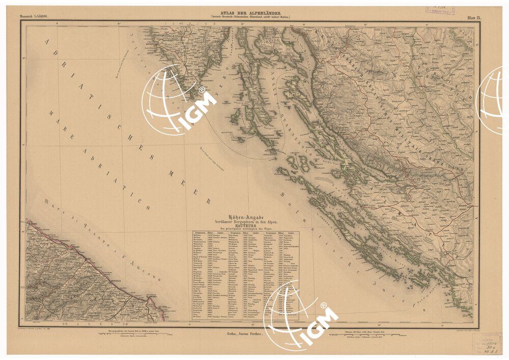 Fogli 12 – Tipo di stampa: in nero colorata a mano, rappresentazione orografica a tratteggio.