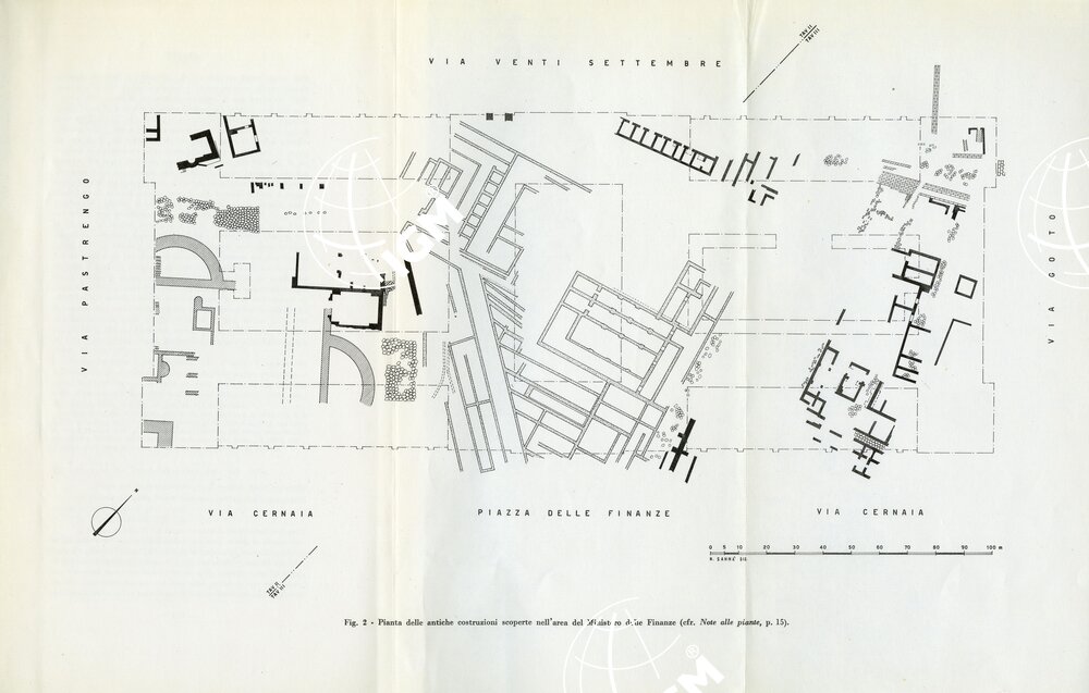 CARTA ARCHEOLOGICA DI ROMA SCHIZZO ALLEGATO AL LIBRETTO DELLA TAVOLA III ANGOLO NORD DELLE TERME DI DIOCLEZIANO
