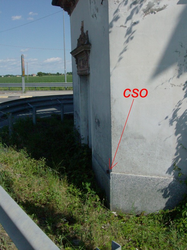 | Contrassegni | [{"simbolo_contrassegno":"B1","materializzazione":"(CSO) – Bullone ARPA infisso sulla facciata dell'edificio prospiciente la strada regionale in prossimit\u00e0 dello spigolo destro."}] |