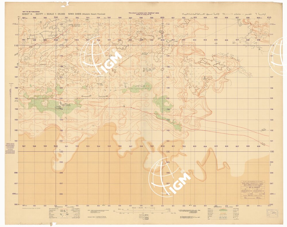 Fogli 6 Tipo di stampa: policroma, rappresentazione orografica a curve di livello, grafia in lingue inglese ed araba.