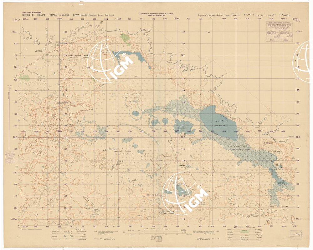 Fogli 6 Tipo di stampa: policroma, rappresentazione orografica a curve di livello, grafia in lingue inglese ed araba.