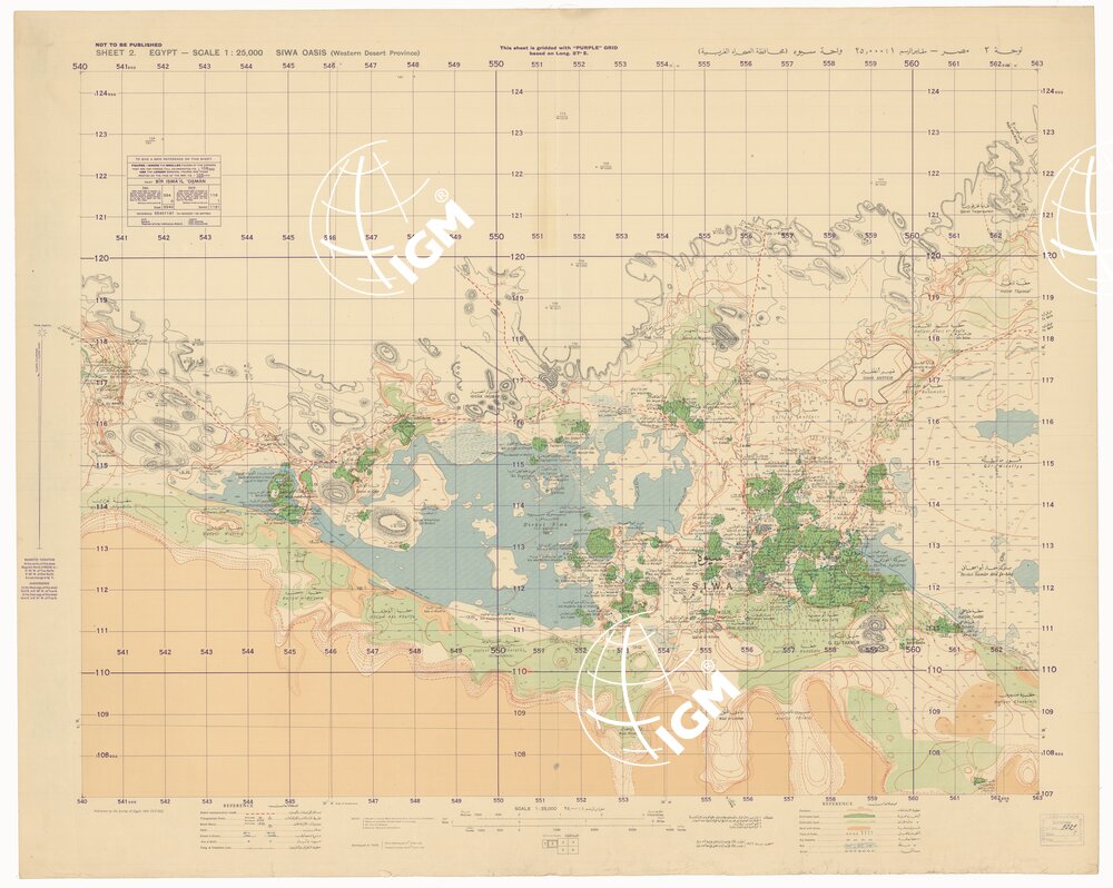 Fogli 6 Tipo di stampa: policroma, rappresentazione orografica a curve di livello, grafia in lingue inglese ed araba.