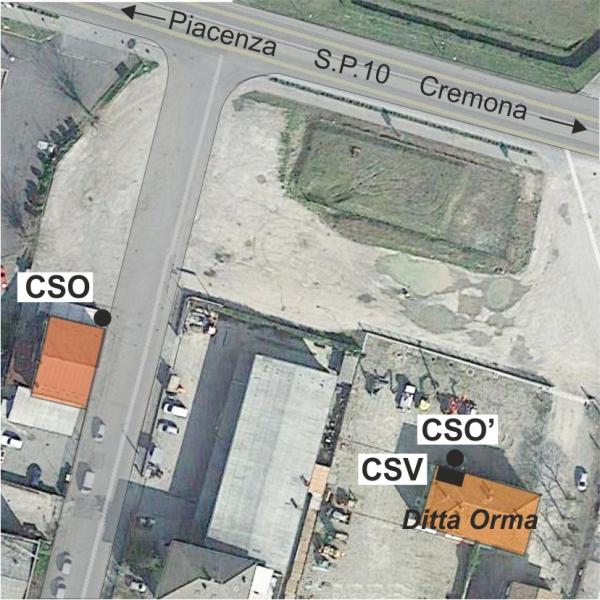 [{"simbolo_contrassegno":"B1","materializzazione":"(CSO) – Bullone infisso sulla facciata del ristorante, spigolo sinistro"},{"simbolo_contrassegno":"P3","materializzazione":"CSO') – Chiusino in ghisa posto alla base della facciata dell'edficio della ditta ORMA, a sinistra della porta di destra."},{"simbolo_contrassegno":"V1","materializzazione":"(CSV) – Mensola posta sulla facciata dell'edificio, a destra della porta"}]