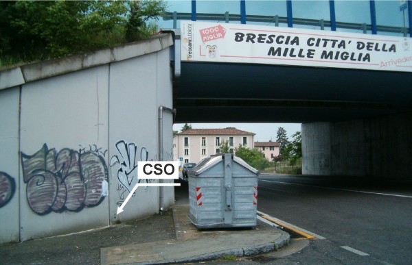 | Contrassegni | [{"simbolo_contrassegno":"B1","materializzazione":"(CSO) – Bullone infisso nel muro di sostegno del cavalcavia a destra uscendo ed in direzione Brescia centro."},{"simbolo_contrassegno":"V1","materializzazione":"(CSV) – Mensola infissa sulla facciata del civico 153\/158 in prossimit\u00e0 dello spigolo sinistro."}] |