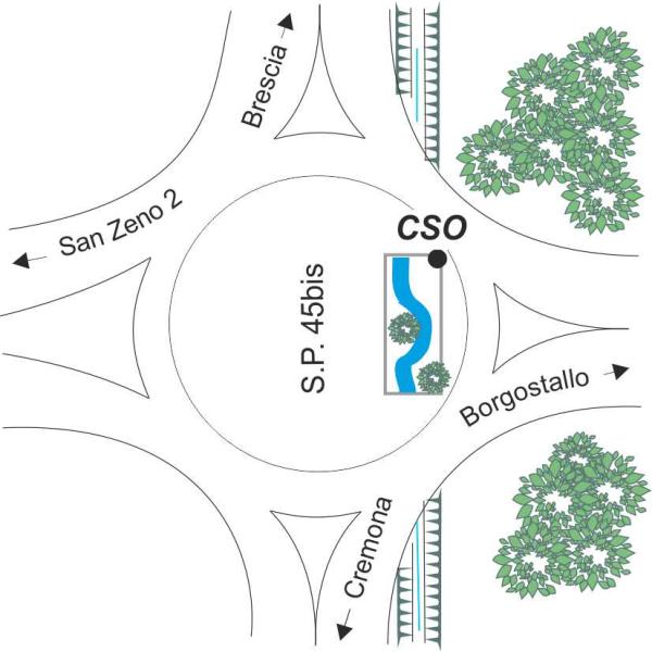 [{"simbolo_contrassegno":"B4","materializzazione":"(CSO) – Centrino universale infisso in corrispondenza dello spigolo nord-est della sommit\u00e0 del muro di ispezione del canale, posto all'interno della rotatoria ."}]