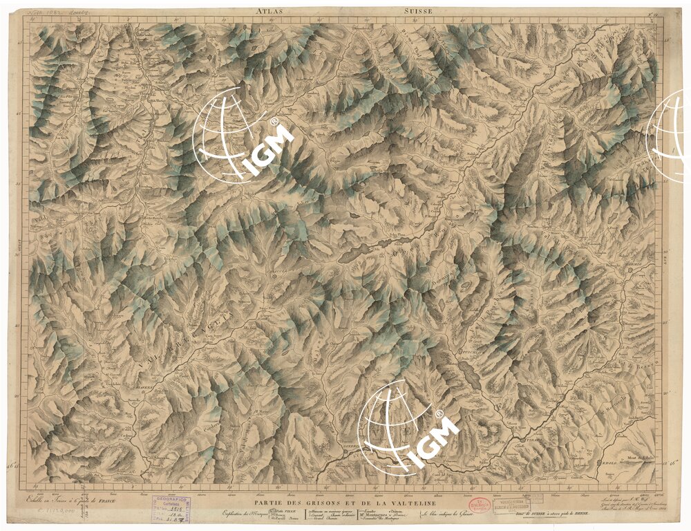 Fogli 16 – Tipo di stampa: incisione su rame (alcuni fogli sono colorati a mano), rappresentazione orografica dimostrativa.