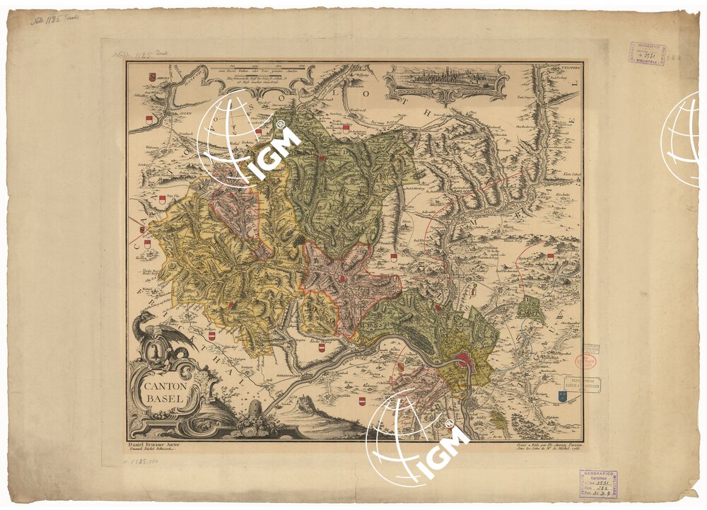 Fogli 1 Tipo di stampa: incisione su rame colorata a mano, rappresentazione orografica dimostrativa.