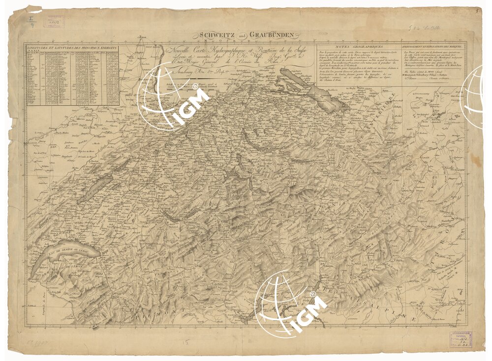 SCHWEITZ UND GRAUBUNDEN – NOUVELLE CARTE HYDROGRAPHIQUE ET ROUTIERE DE LA SUISSE ETC…