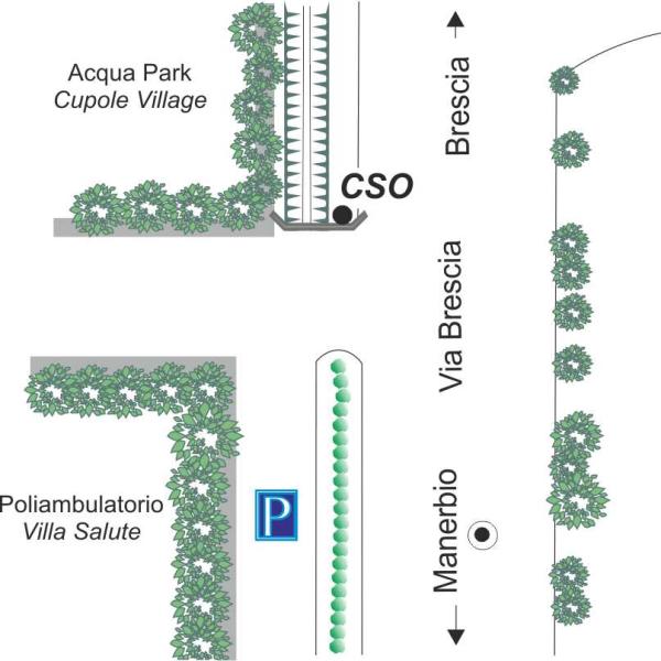 | Contrassegni | [{"simbolo_contrassegno":"B1","materializzazione":"(CSO) – Bullone infisso nel muro a retta del passo carrabile d'accesso al poliambulatorio \"Villa Salute\"."}] |