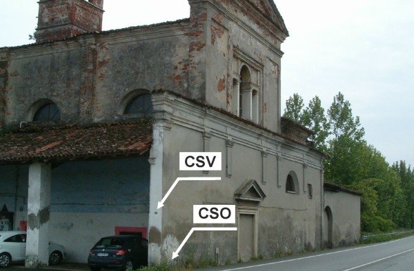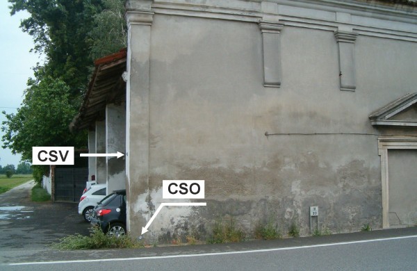 | Contrassegni | [{"simbolo_contrassegno":"B1","materializzazione":"(CSO) – Bullone infisso nel pilastro sinistro della chiesa, lato strada."},{"simbolo_contrassegno":"V6","materializzazione":"(CSV) – Piastrina con cilindretto infissa sulla parete laterale della ex Chiesa ed in prossimit\u00e0 del CSO."}] |