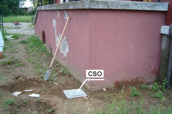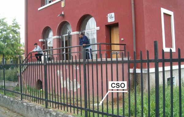 [{"simbolo_contrassegno":"P5","materializzazione":"(CSO) – Pozzetto rialzato con tubo in PVC e coperchio in ghisa, protetto da chiusino in cemento 40×40, posto alla base del muro di sostegno della rampa di scale, lato opposto all'accesso."}]