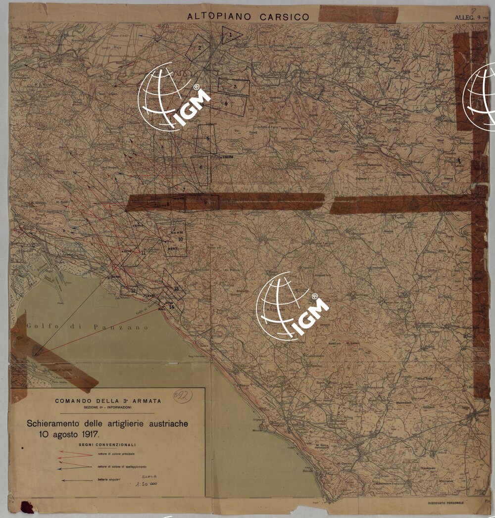 Schieramento delle artiglierie austriache alla data del 10 agosto 1917