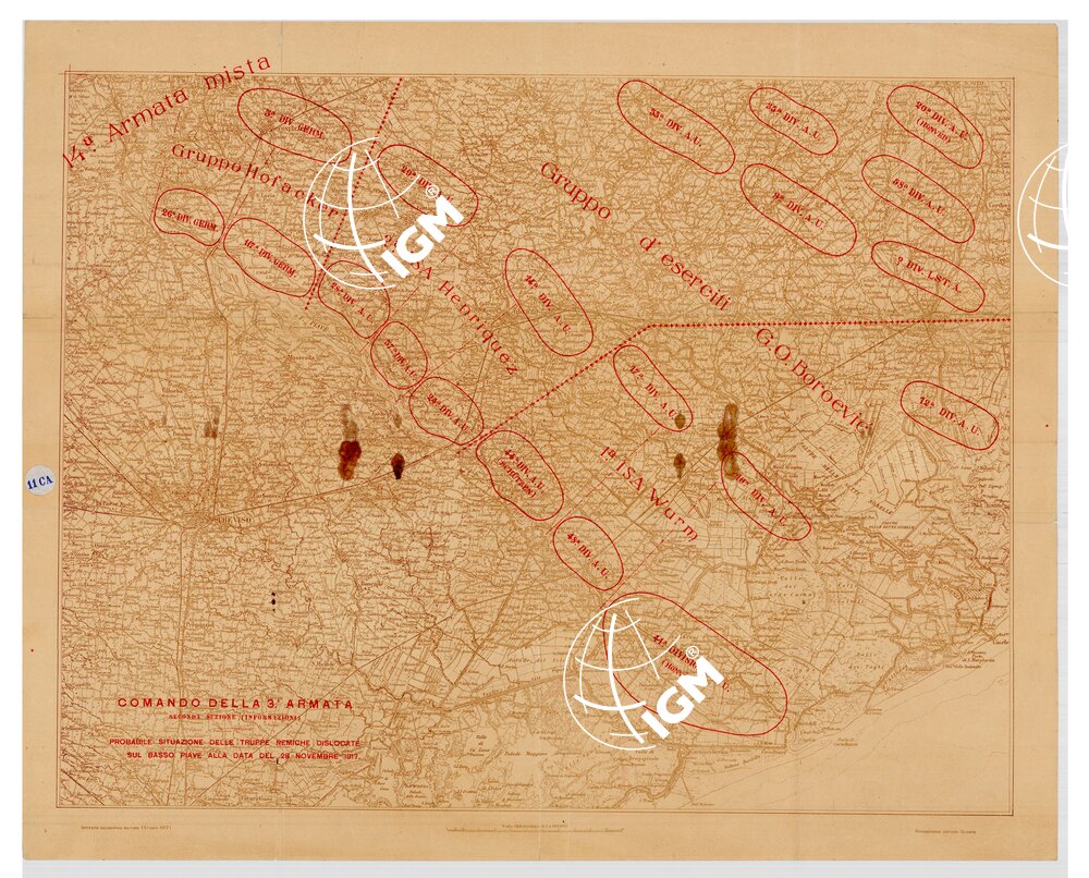 Probabile situazione delle truppe nemiche dislocate sul basso piave alla data del 28 novembre 1917