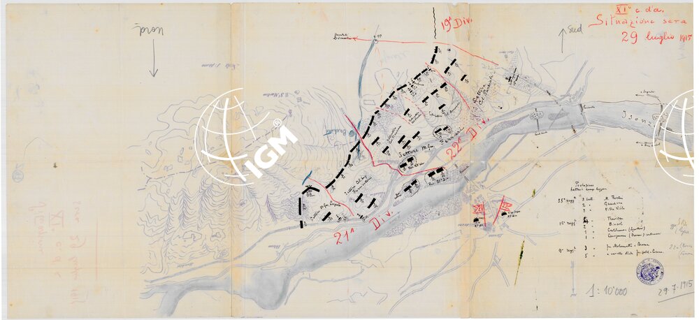 XI Corpo d’Armata, situazione alla sera del 29’7’1915