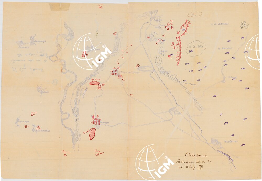 X Corpo d’Armata, situazione alle ore 20.00 del 26’7’1915