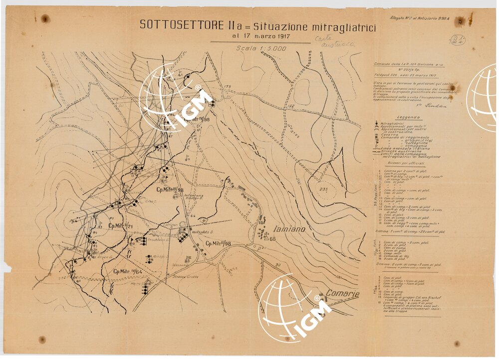 Situazione mitragliatrici nemiche alla data del 17’3’1917 (da carta austriaca)