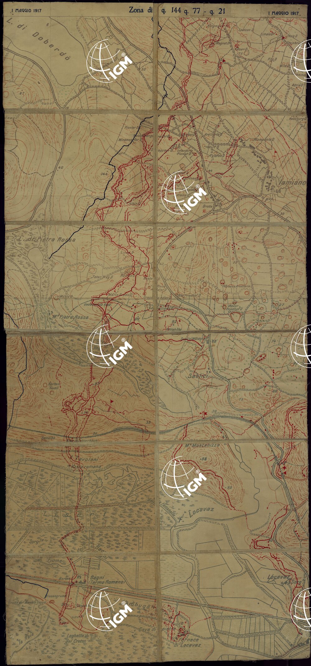 PROPRIETA’ MUSEO STORICO III ARMATA (PADOVA) – Sistemazione difensiva Austriaca desunta da fotografie di aviatori e informazioni dai prigionieri. Fronte e Retro