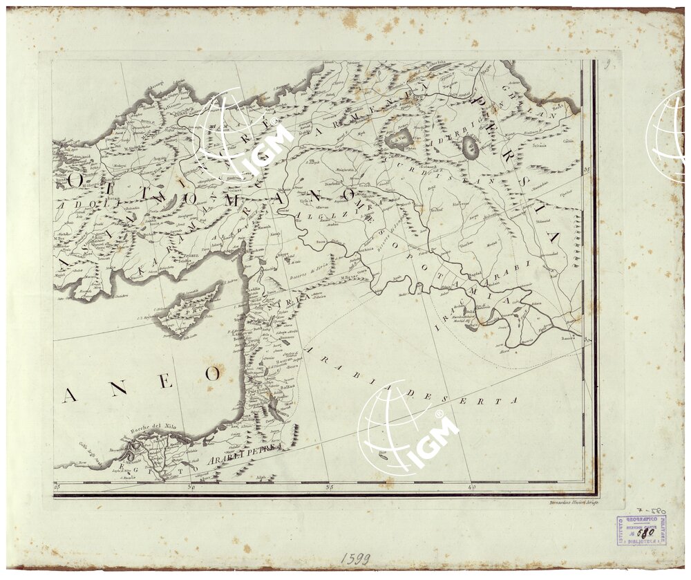Fogli 9 incisione su rame rappresentazione orografica prospettica.
