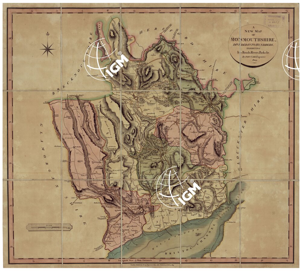 A NEW MAP OF MONMOUTHSHIRE DIVIDED INTO HUNDREDES ITS ROADS RIVERS PARKS
