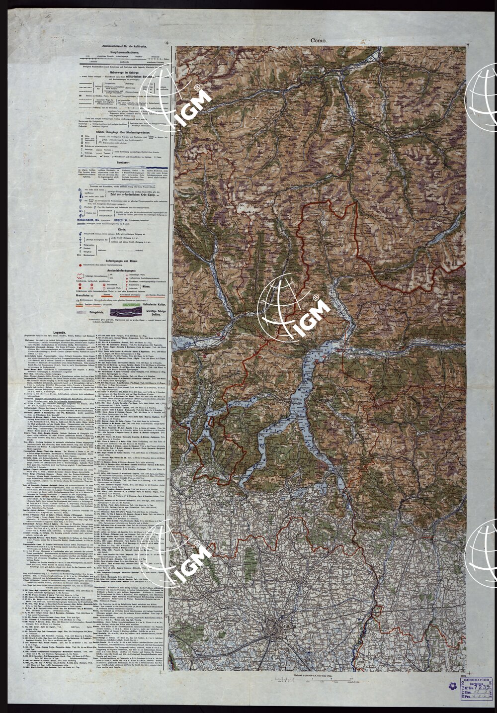 CARTA DELL'ITALIA SETTENTRIONALE E ZONE CONFINANTI – FOGLIO 1 COMO