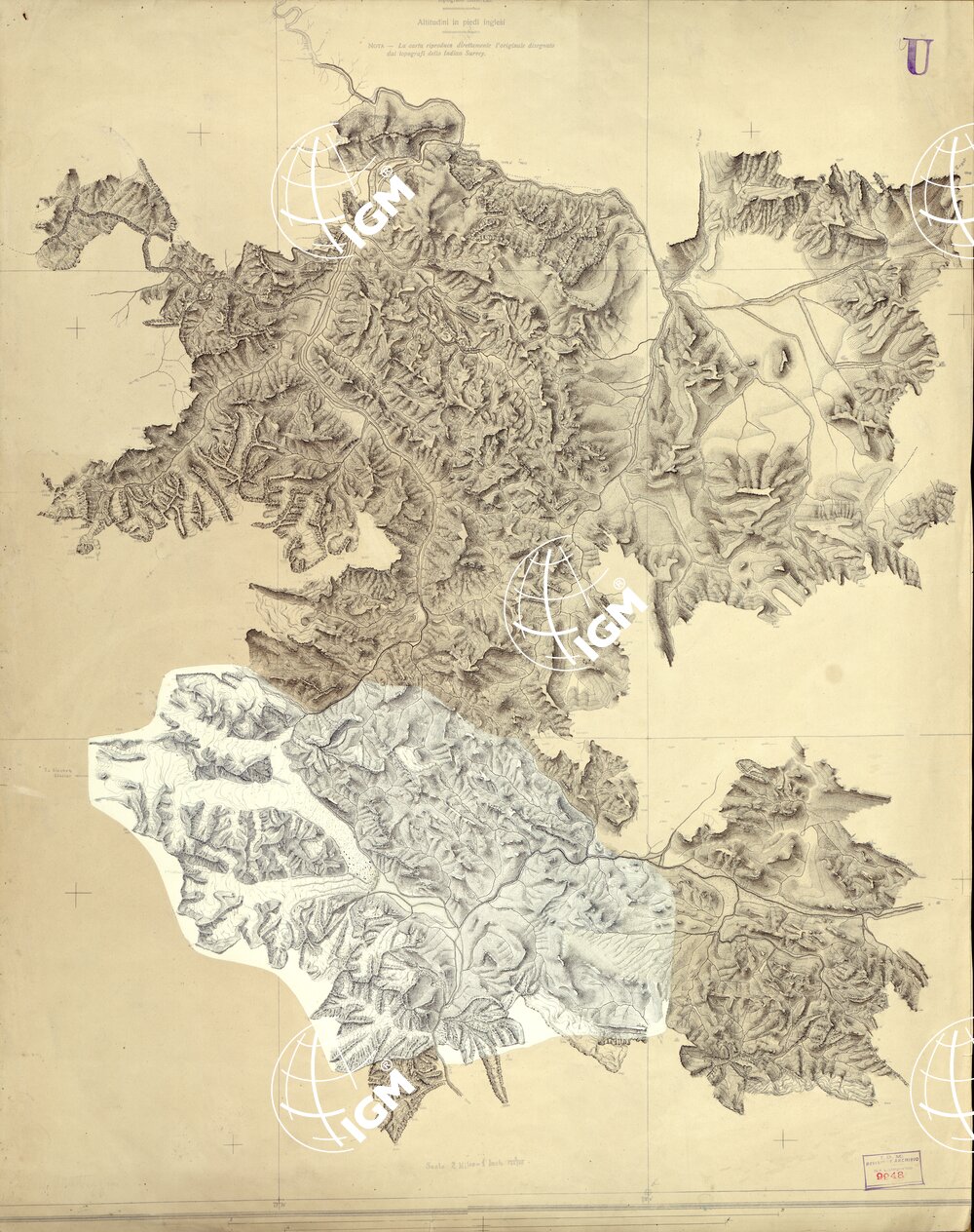 Originale alla scala di 1:186.780 dell’ idrografia e orografia della carta dell’ altipiano Depsang alla scala di 1:250.000