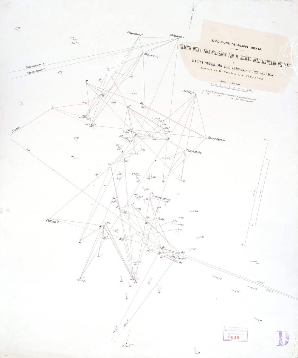 Originale alla scala di 1:400.000 del grafico della triangolazione per il rilievo dell’ altipiano Depsang.