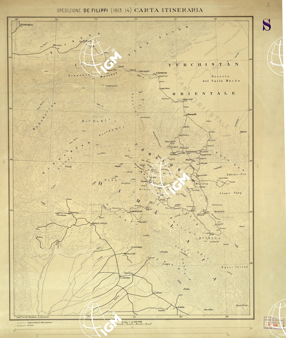 SPEDIZIONE DE FILIPPI IN KARACORUM – ITINERARI DELLA SPEDIZIONE DE FILIPPI – ORIGINALE – PLANIMETRIA E TOPONOMASTICA
