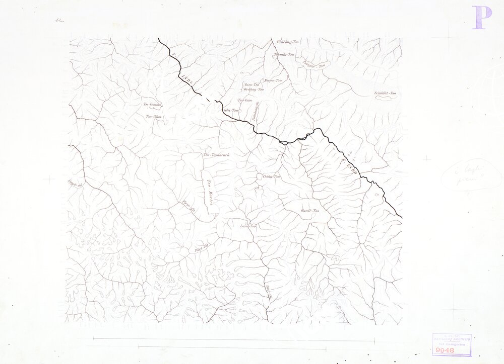 Originale disegnato a penna alla scala di 1:500.000 dell’ idrografia della carta dei bacini chiusi della zona delle Rupsciu alla scala di 1:750.000