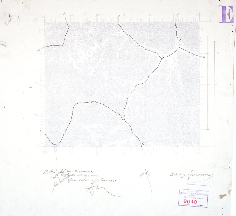 Originale disegnato a penna alla scala di 1:200.000 della planimetria della carta dell’ alta valle dell’ Iunan e il Baralacia-La alla scala di 1:250.000