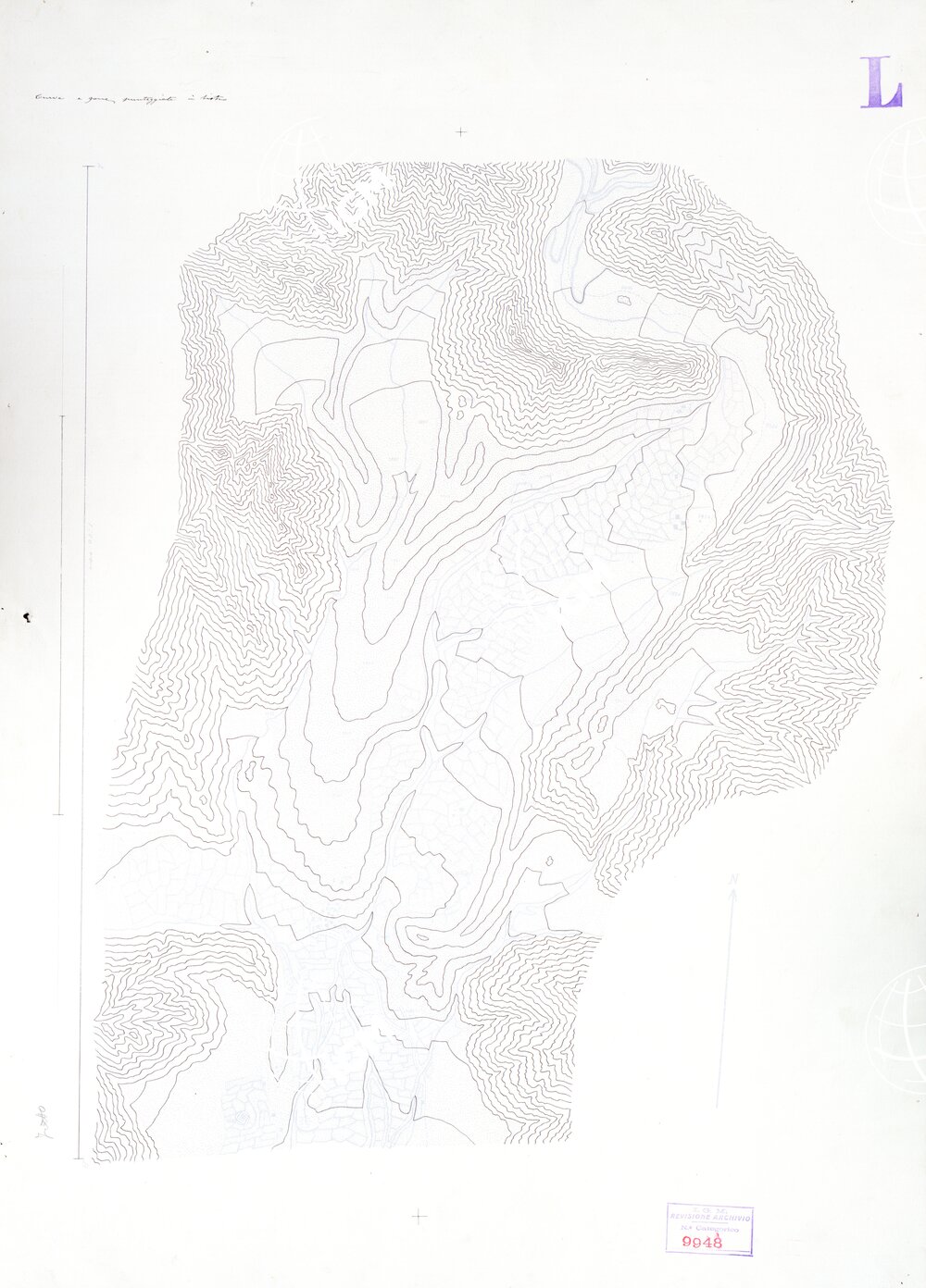 Originale disegnato a penna alla scala di 1:10.000 dell’ orografia della carta dell’ apparato morenico di Le alla scala di 1:25.000