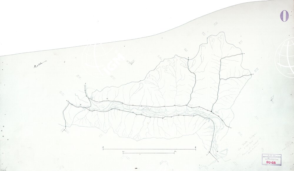 Originale disegnato a penna alla scala di 1:150.000 della planimetria della carta della valle dello Scigar alla scala di 1:250.000