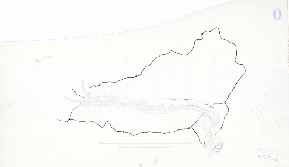 Originale disegnato a penna alla scala di 1:150.000 dell’ orografia della carta della valle dello Scigar alla scala di 1:250.000