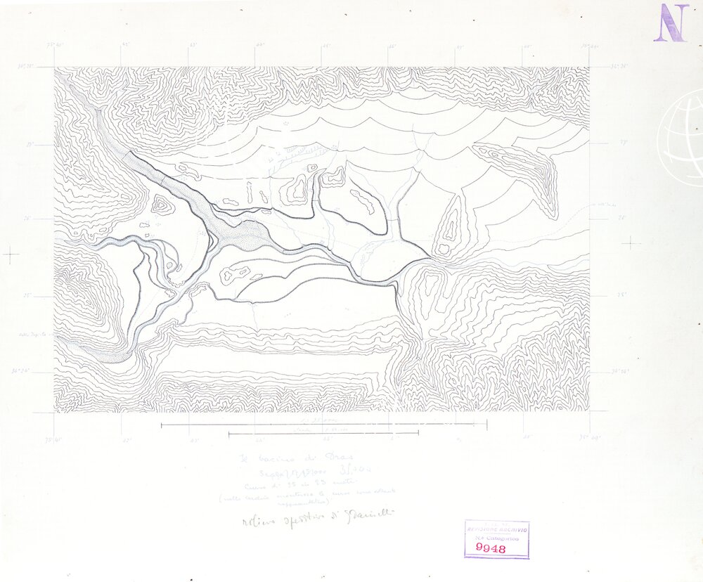 Originale disegnato a penna alla scala di 1:18.000 dell’ orografia della carta del bacino di Dras alla scala di 1:30.000