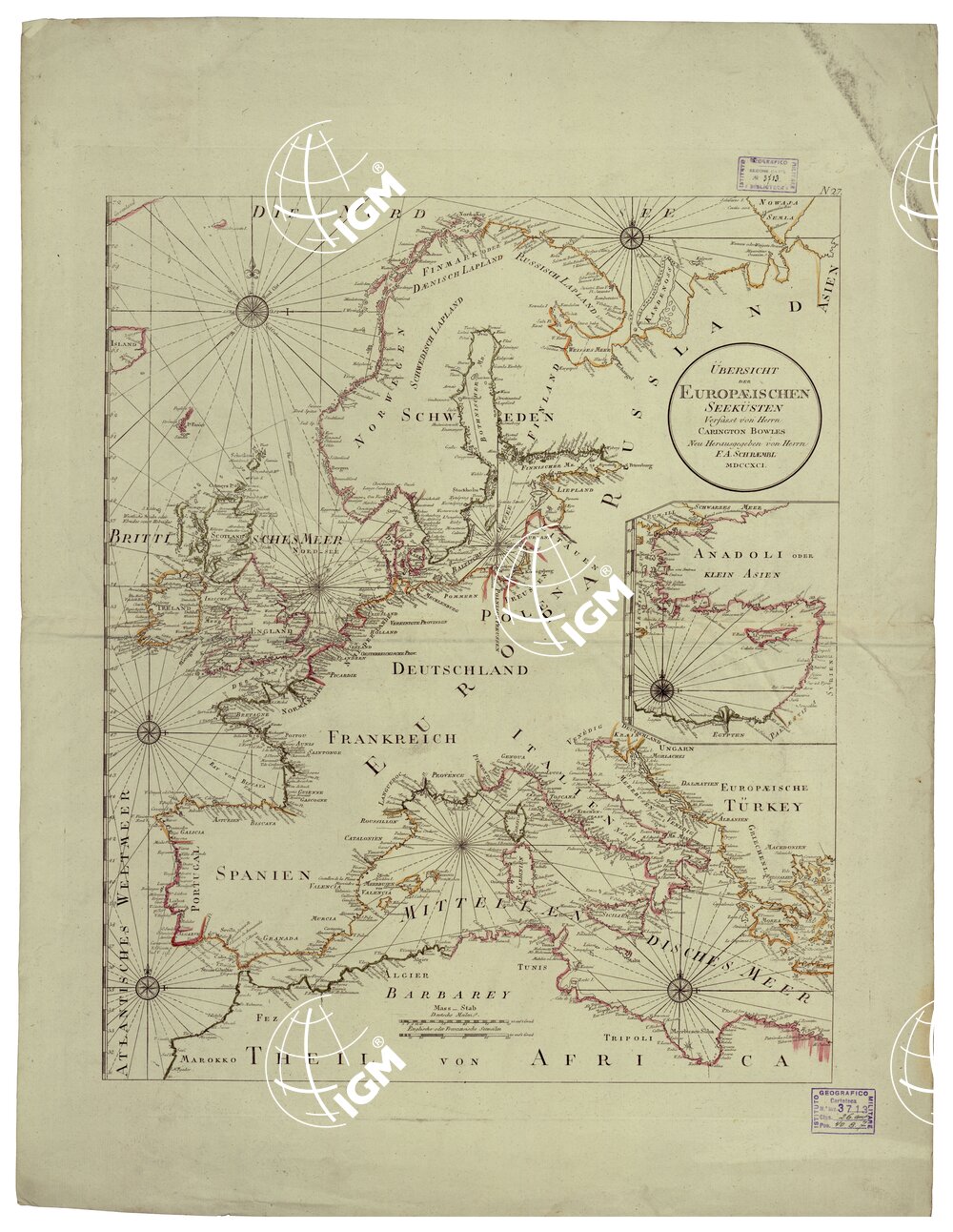 Fogli 1 incisione colorita a mano rappresentazione orografica planimetrica.