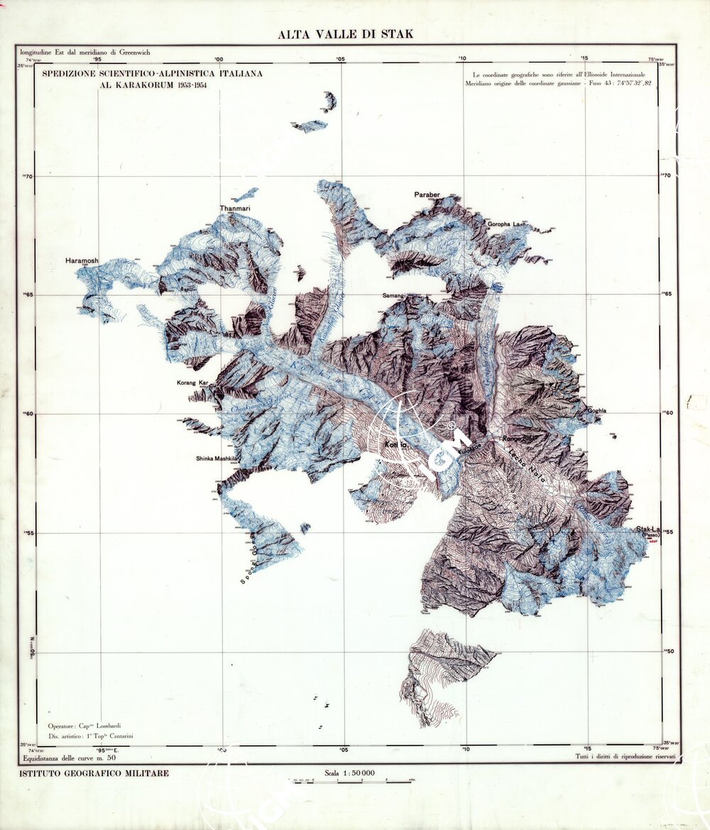 Dai rilievi eseguiti nel corso della spedizione scientifico – alpinistica Italiana al Karakorum 1953 – 1955