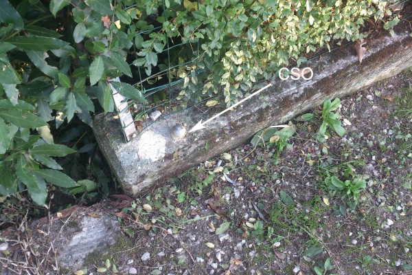 [{"simbolo_contrassegno":"B2","materializzazione":"(CSO) – Chiodo anonimo infisso sul muretto di recinzione, a sinistra dell'ingresso."},{"simbolo_contrassegno":"B1","materializzazione":"(CSO') – Bullone infisso sulla facciata dell'edificio fronte strada, in prossimit\u00e0 dello spigolo sinistro."}]
