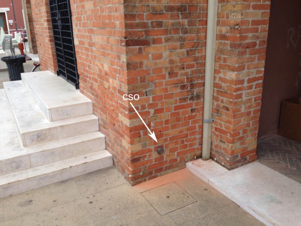 [{"simbolo_contrassegno":"B1","materializzazione":"(CSO) – Bullone infisso sulla destra dell'avancorpo del Centro Civico Comunale."},{"simbolo_contrassegno":"V4","materializzazione":"(CSV) – Piastrina di Altro Ente infissa sulla facciata del campanile, alla sinistra della porta."},{"simbolo_contrassegno":"B2","materializzazione":"(CSO') – Chiodo anonimo infisso sulla sinistra della soglia del portone centrale del Duomo di Caorle."}]