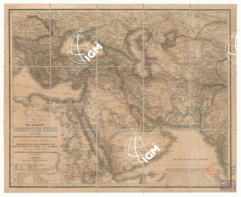 Un foglio montato su tela, inc. su rame col. a mano rappr.orogr.a tratteggio