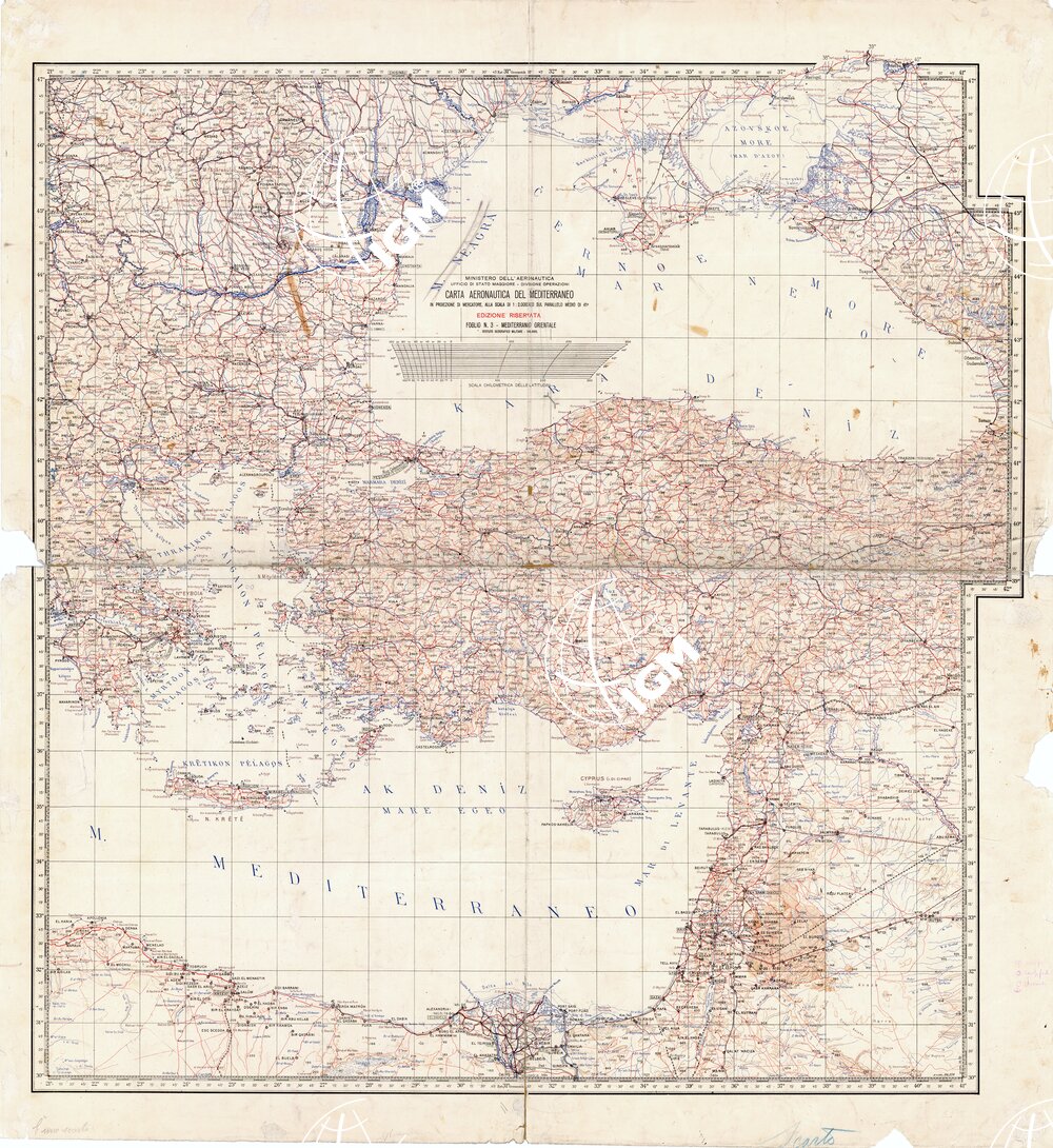 CARTA AERONAUTICA DEL MEDITERRANEO FOGLIO 3 MEDITERRANEO ORIENTALE