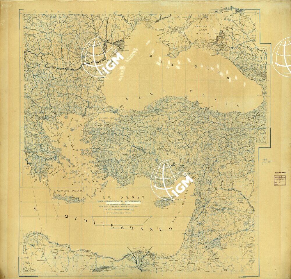 CARTA AERONAUTICA DEL MEDITERRANEO FOGLIO 3 MEDITERRANEO ORIENTALE ORIGINALI A COLORI SEPARATI IDROGRAFIA