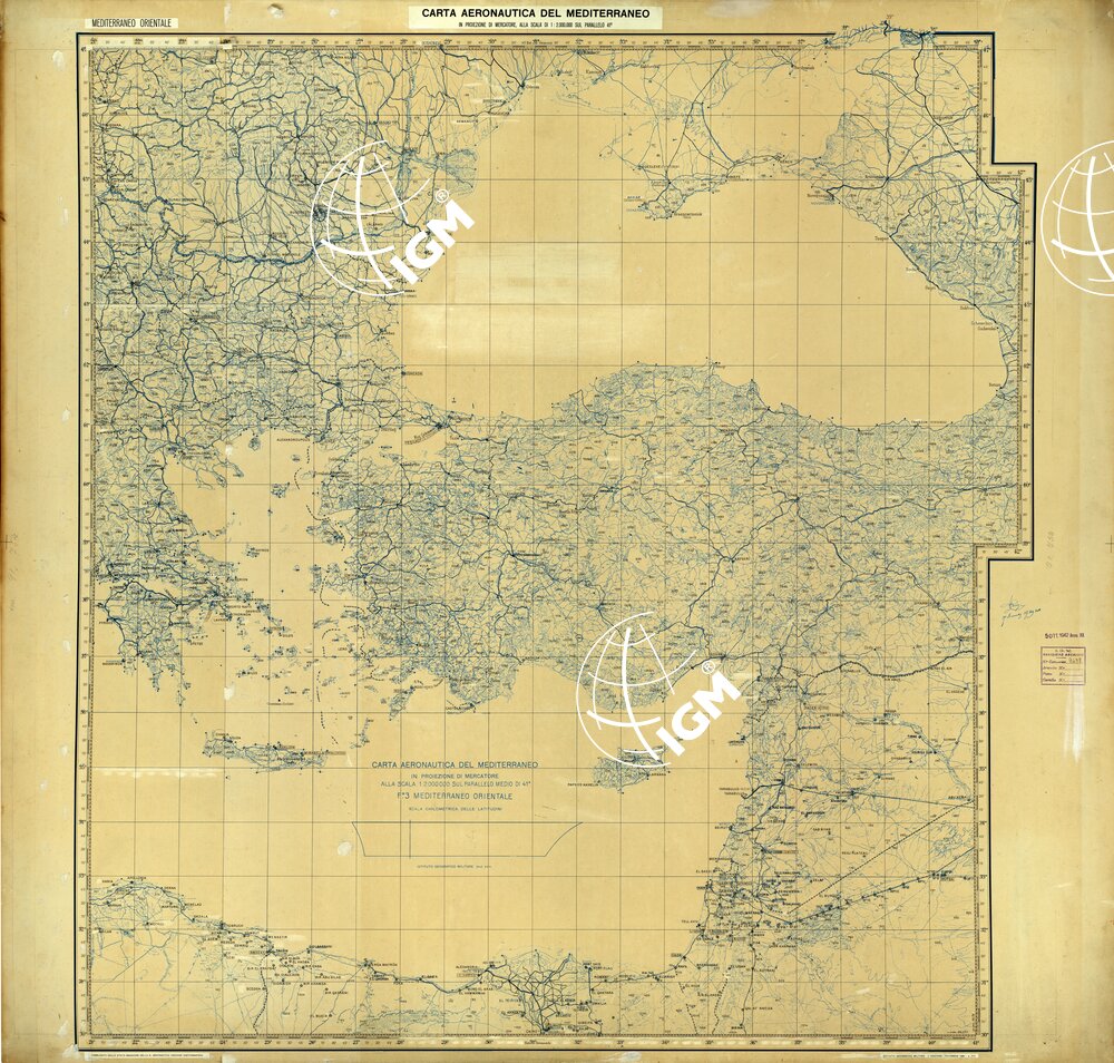 CARTA AERONAUTICA DEL MEDITERRANEO FOGLIO 3 MEDITERRANEO ORIENTALE ORIGINALI A COLORI SEPARATI NERO