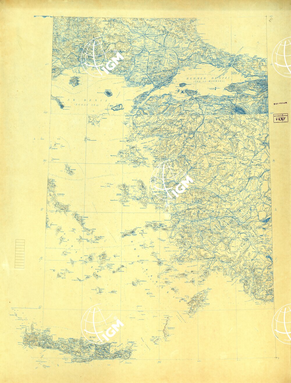 Carta realizzata dalla Divisione Cartografica dell’ IGM per conto del Ministero dell’ Aeronautica, gli originali sono disegnati su calco cianografico alla scala di 1:820.000