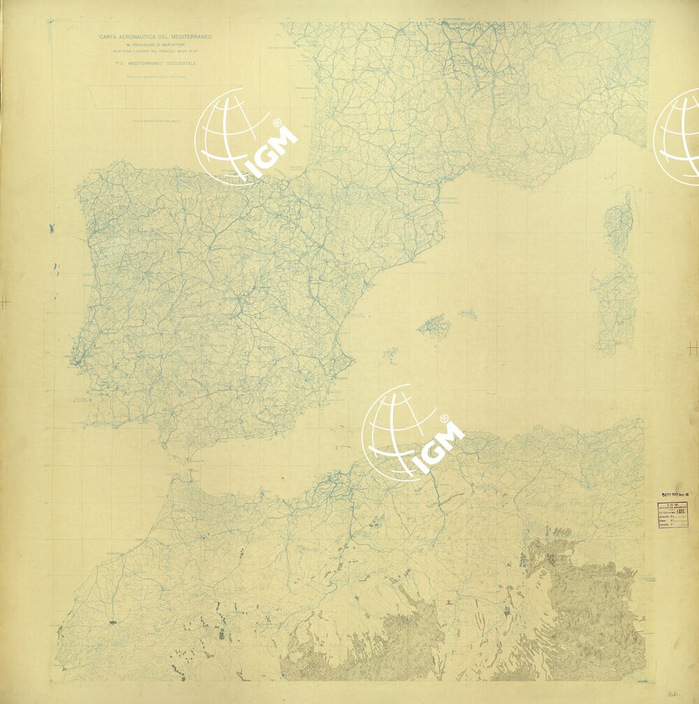 CARTA AERONAUTICA DEL MEDITERRANEO FOGLIO 2 MEDITERRANEO OCCIDENTALE ORIGINALI A COLORI SEPARATI VEGETAZIONE E DESERTI