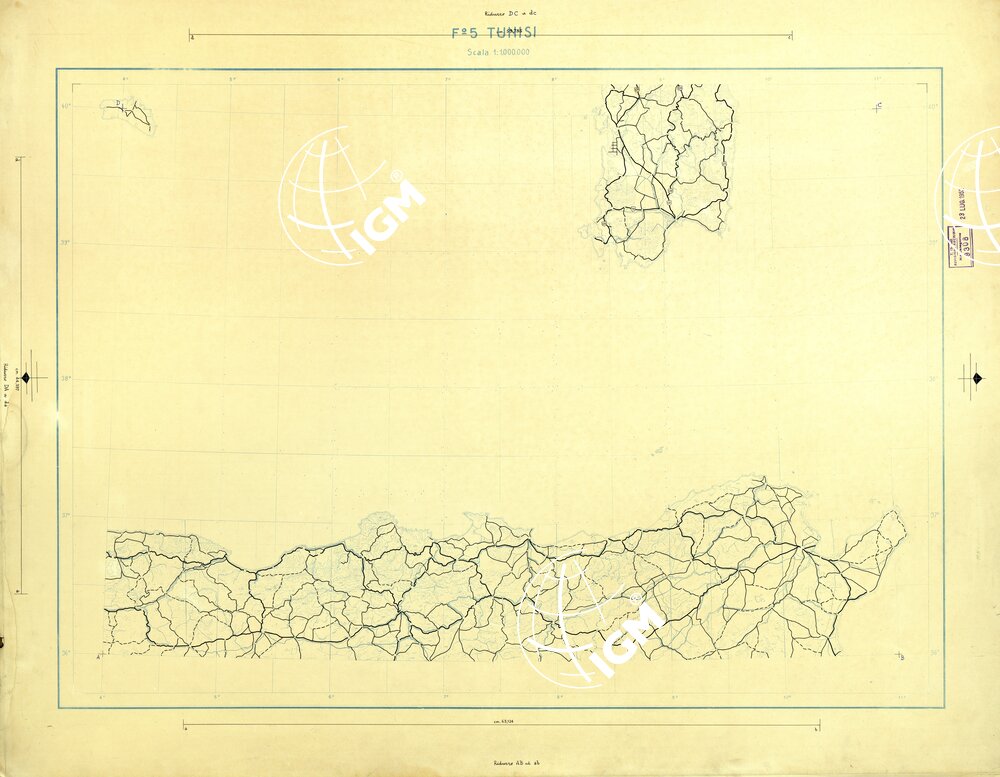 CARTA AERONAUTICA DEL MONDO FOGLIO 2345 TUNISI ORIGINALI A COLORI SEPARATI STRADE