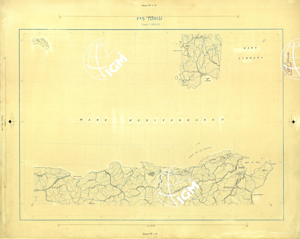 CARTA AERONAUTICA DEL MONDO FOGLIO 2345 TUNISI ORIGINALI A COLORI SEPARATI ACQUE