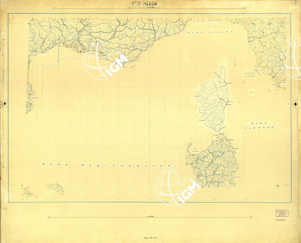 CARTA AERONAUTICA DEL MONDO FOGLIO 2320 MARSEILLE ORIGINALI A COLORI SEPARATI ACQUE
