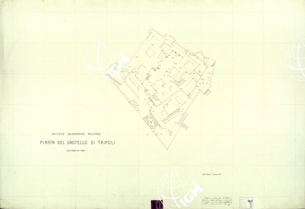 PIANTA DEL CASTELLO DI TRIPOLI – ORIGINALI A COLORI SEPARATI – PLANIMETRIA