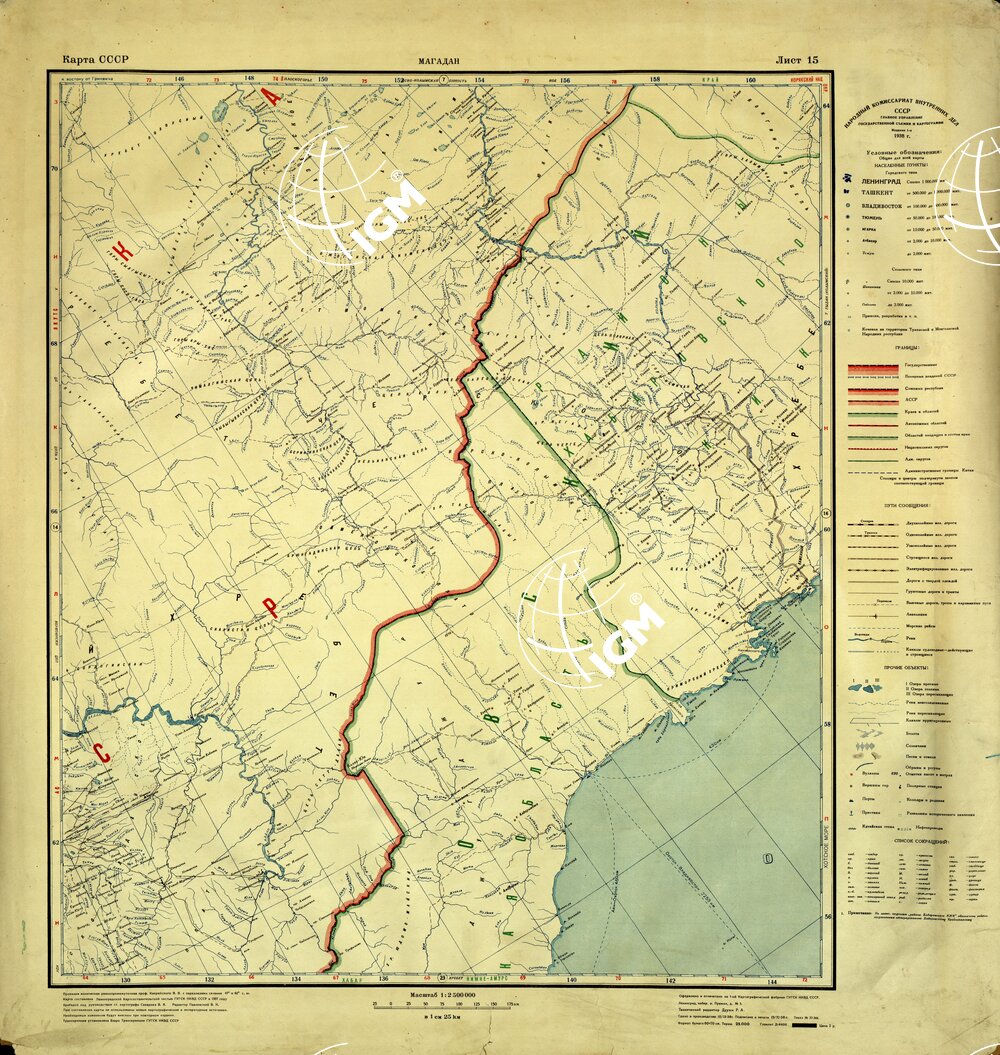 Copie originali Russe con toponomastica e diciture marginali in caratteri cirillici.