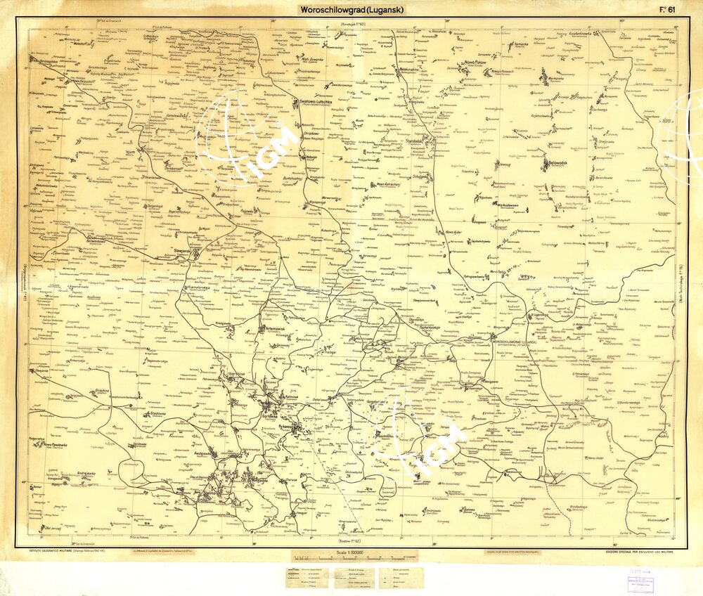 Carta realizzata dall’ IGM su richiesta del Comando della 8° armata in Russia. Compilata con elementi cartografici forniti dalla 33° sezione topocartografica dell’ ufficio operazioni del C.S.I.R. fù stampata nel Febbraio 1942.